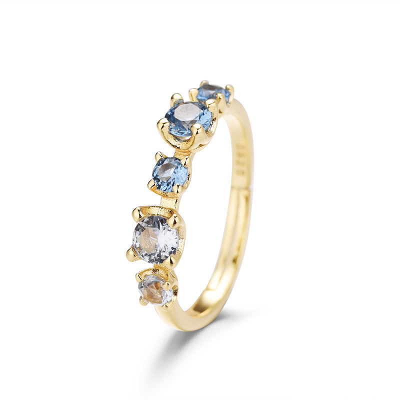 Gradient Blue And White Topaz Multi-gemstone Zircon Ring For Women