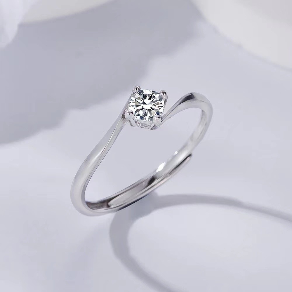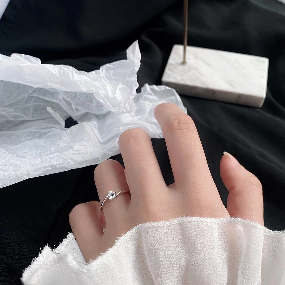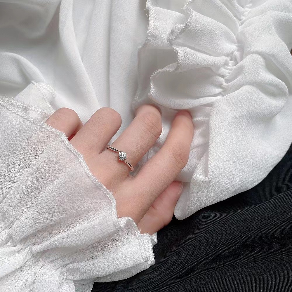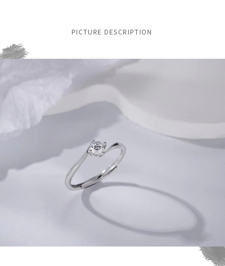 Anillo para dedo índice de circón de plata esterlina, elegante