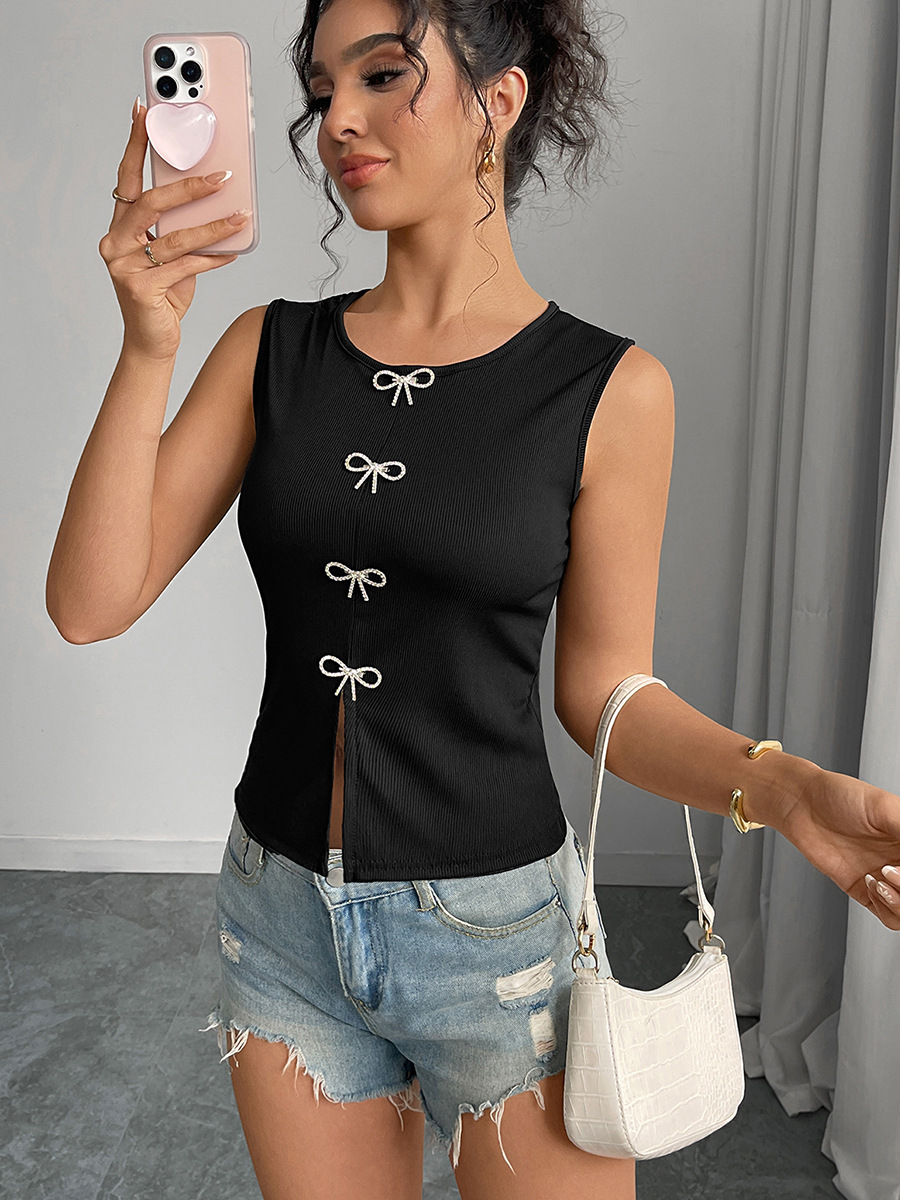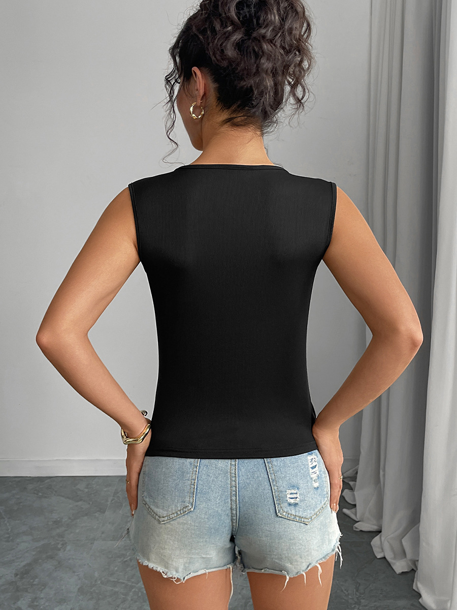 Blusa sin Mangas con Abertura – Estilo Elegante/Office