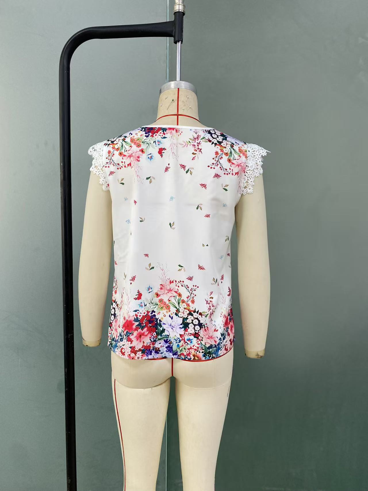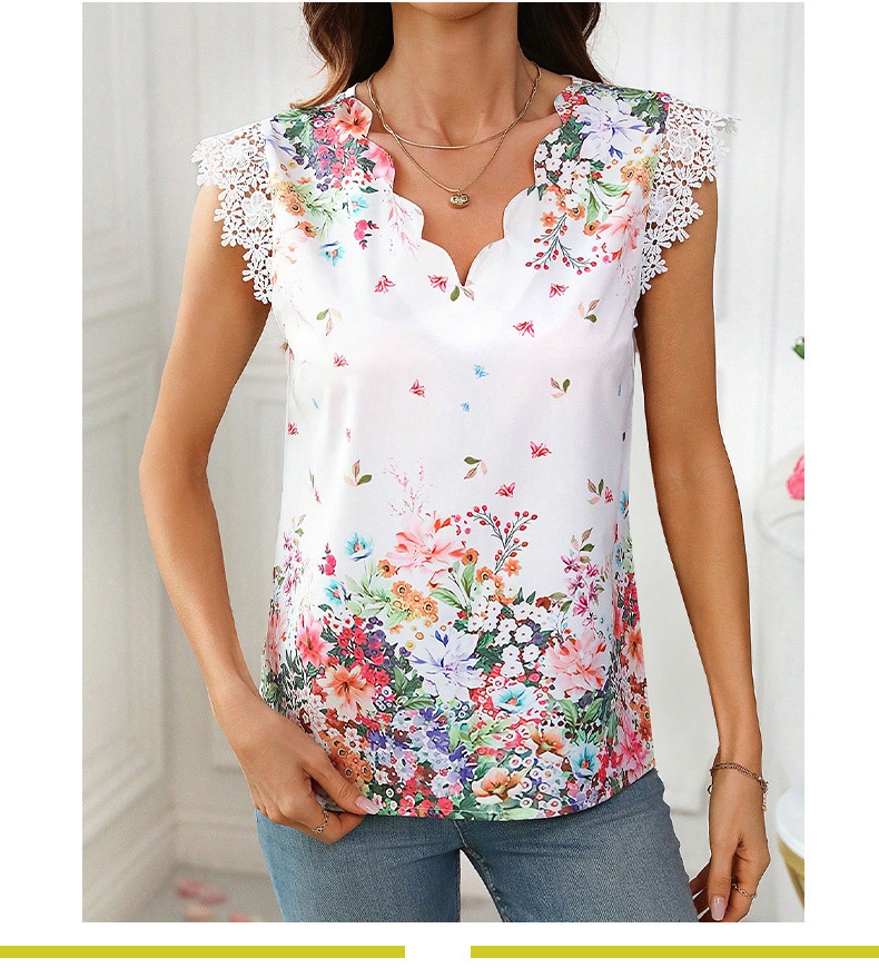 Women's Minimalist Printed V-neck Short Sleeved Shirt